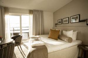 Efter en dag fylld av möten kan du koppla av på det flytande hotellet i ett dubbelrum, omgiven av en lugn miljö med havet som närmaste granne. Varje rum är utrustat med moderna bekvämligheter som Wi-Fi och skrivbord, vilket gör det enkelt för dig att förbereda nästa arbetsdag.
